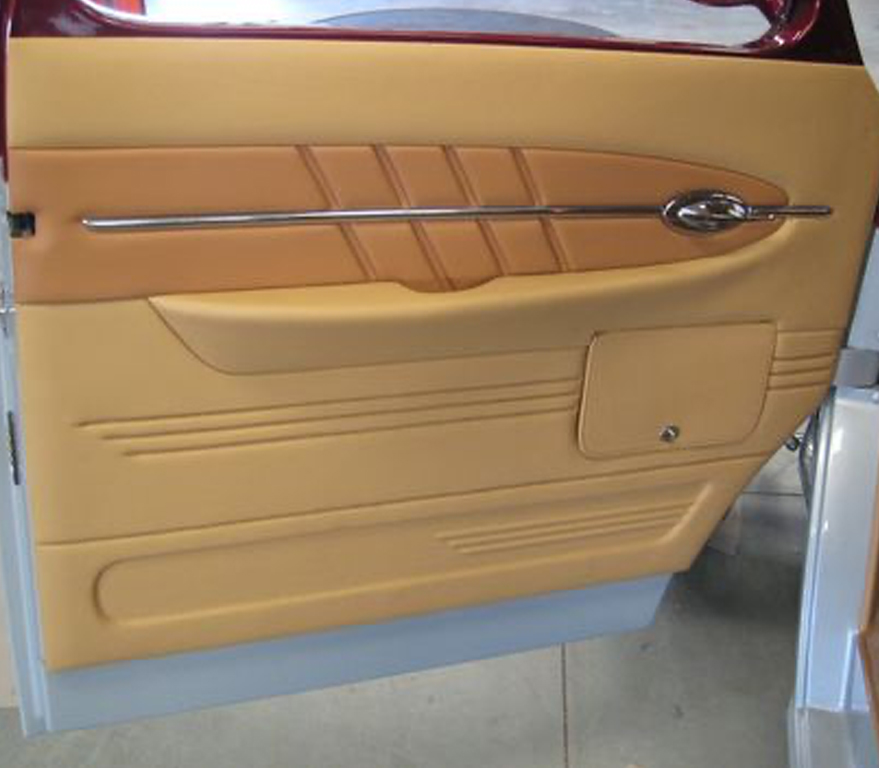 If you are tired of your old door panels and would like make some changes in the auto interior, we will help you. Our auto upholstery shop provides custom auto door restoration: you can choose any style and any color for your door panels upholstery. We are able to do it with leather, vinyl, fabric or suede material, with any unique combination of lines and stitches.